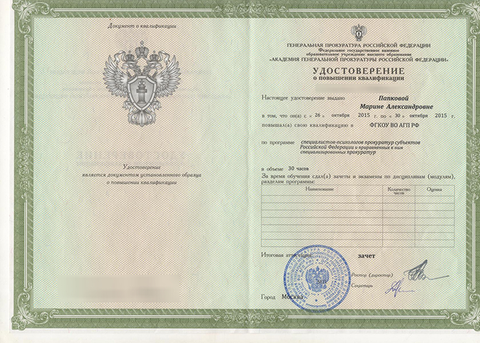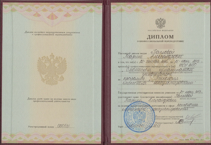 - Психологом группы психофизиологической диагностики в "Медико-санитарной части №40 Федеральной службы исполнения наказаний".