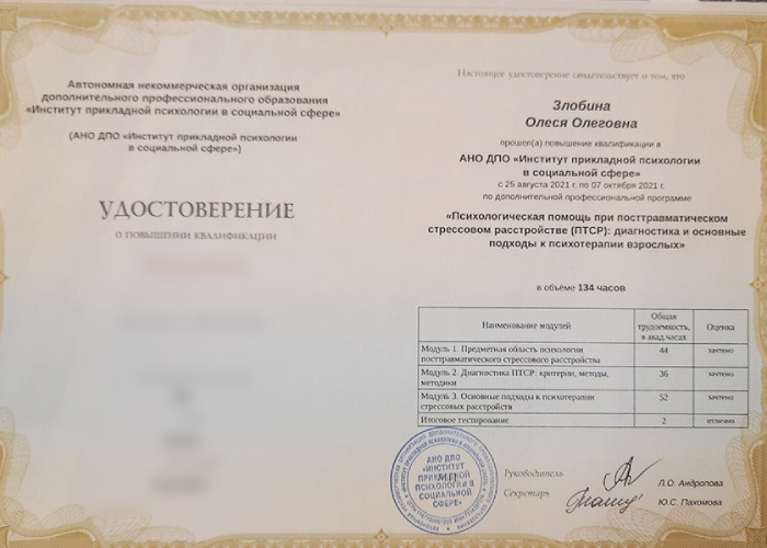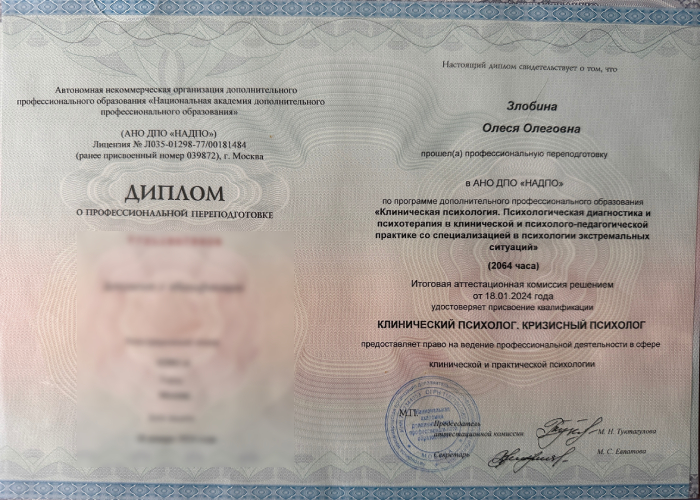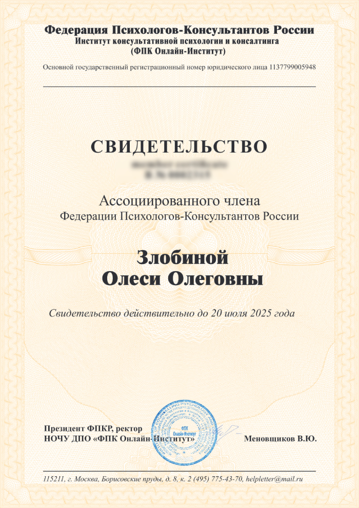 Практикующий психолог, клинический и кризисный психолог, член Федерации психологов-консультантов России