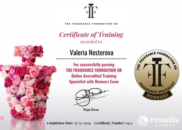 - Парфюмерные курсы в Fragrance Foundation UK (Англия) и Art and Olfaction Institute (США).