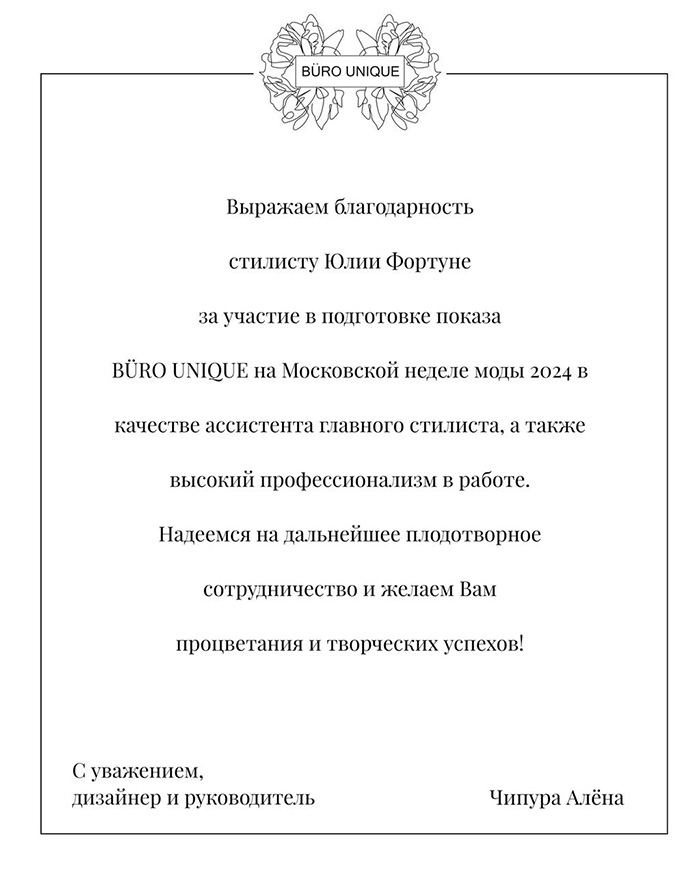 В 2021г. Прошла обучение в школе Style with GalaB по стилизации, организации и проведении фото-проектов и фотосессий.
