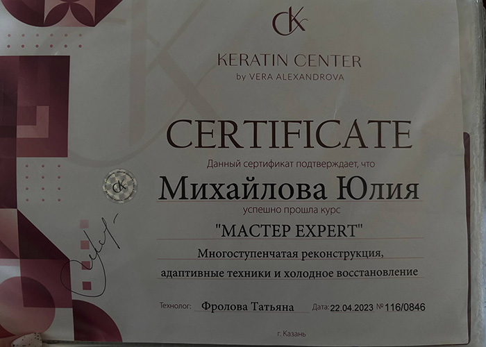 Мастер-эксперт по реконструкции волос, с опытом более 6 лет.