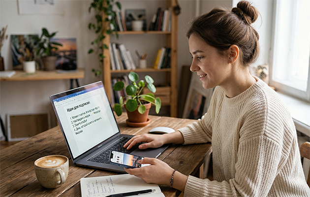 Секрет хорошего поста — в балансе. Текст должен дополнять визуальный ряд, а не пересказывать его. Не нужно описывать все, что есть на фото — лучше выделить одну важную деталь, например, красивый закат, вкусный кофе или аромат цветов, и подписать: «Просто хороший момент». Дайте ей контекст.