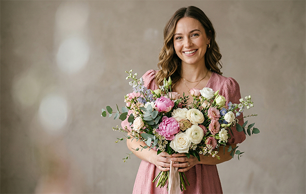 - Счастливого человека выдают глаза и… огромный букет!