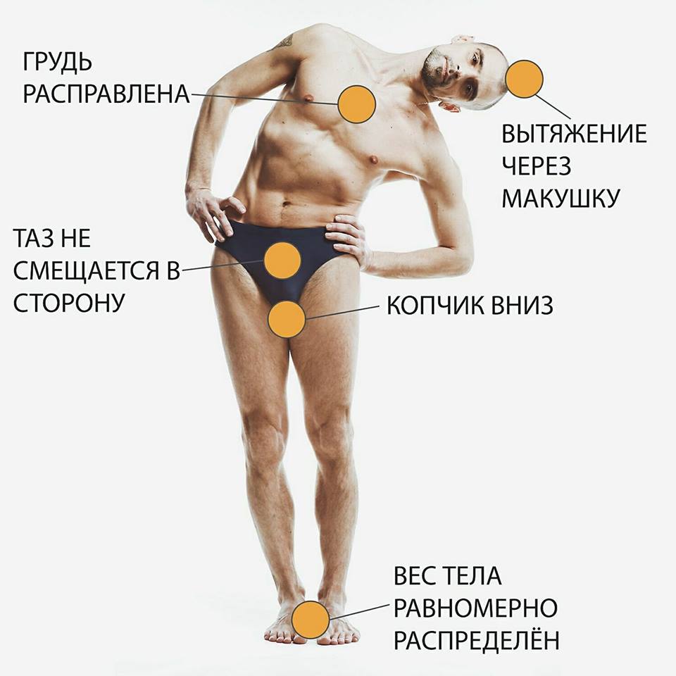 Важно! Равномерно распределяйте вес на обе ступни. Удерживайте таз в исходном положении и не заваливайтесь в поясничном и грудном отделах позвоночника. Расправьте грудь и плечи, немного сводя лопатки. Не напрягайте шею, плечи, руки. Вытягивайтесь от копчика до макушки.