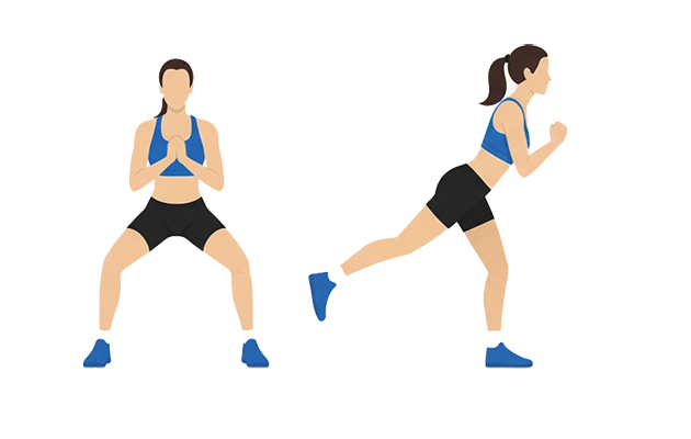 Упражнение из классической тренировки. Существует несколько разновидностей выпадов: стандартные, с поворотом, шагом и многие другие. Новичкам стоит выбрать простой вариант и постепенно увеличивать нагрузку. Основная нагрузка приходится на четырехглавые мышцы бедра и большие ягодичные мышцы. Упражнение помогает научиться держать равновесие, так как в работу также включаются мышцы-стабилизаторы.