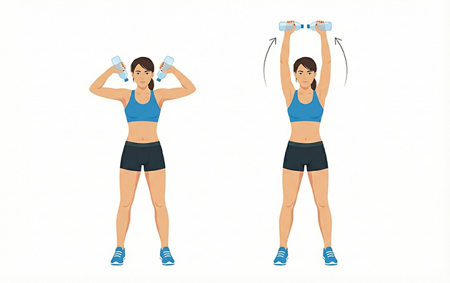 - На вдохе отжимайте инвентарь вверх, расположив над головой.