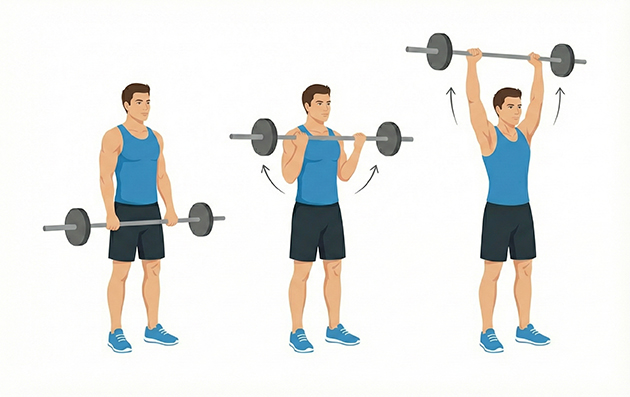 Тренировка проходит в медленном темпе — по 2 секунды на подъем и опускание, в 3-4 подхода по 12-15 повторений с небольшим весом или пустым грифом без блинов.