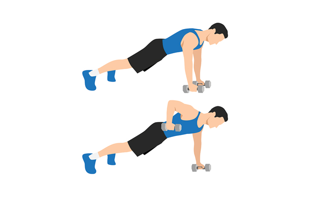 Функциональное домашнее упражнение с гантелями, которое сочетает в себе элементы силовой и стабилизирующей нагрузки. Оно выполняется из положения планки и активно задействует сразу несколько мышечных групп, включая спину, пресс, грудные, руки и стабилизаторы корпуса. Упражнение особенно ценится за свою универсальность и способность одновременно развивать силу, координацию и выносливость.