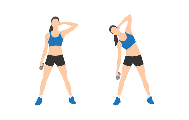 Оно выполняется в положении стоя: вы держите одну или две гантели в руках и выполняете наклоны в стороны, не наклоняя корпус вперед или назад. Движение должно быть контролируемым, с акцентом на растяжении и сокращении боковых мышц. Спину при этом важно держать ровно, взгляд направлен вперед, а плечи остаются на одной линии.