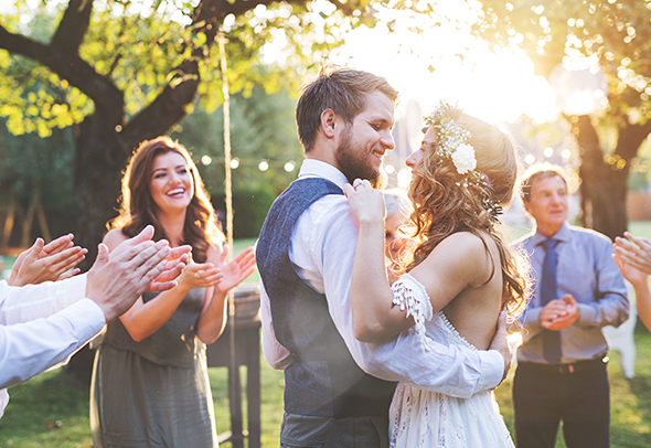 Это уютная церемония, проходящая дома или на даче молодоженов. Атмосферу создают близкие друзья и родственники. Распорядители — сами жених и невеста. Вместе с родителями они организуют пространство, готовят угощение и развлекательную программу. Возможно привлечь друга-диджея для музыкального сопровождения.