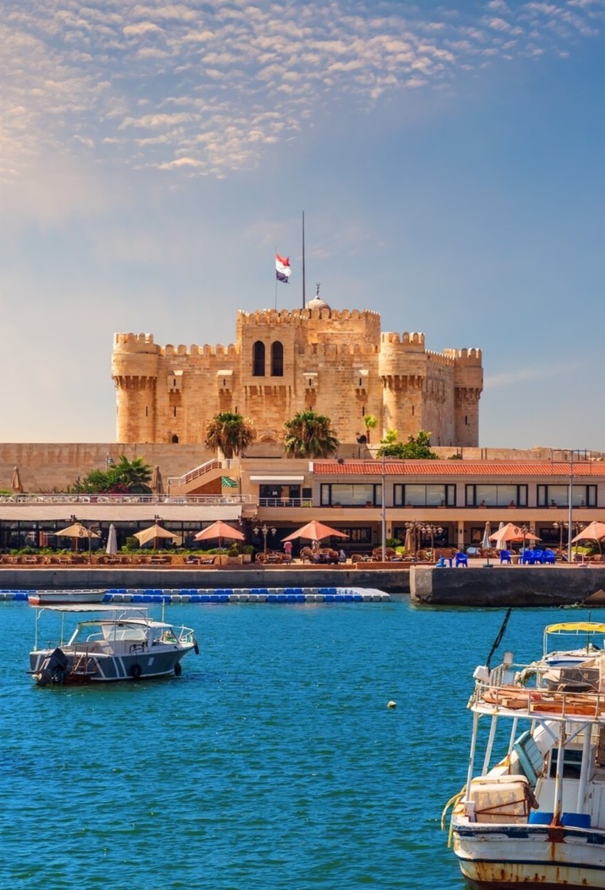 Внутри крепости находится морской музей с экспонатами, рассказывающими о морской истории Египта — от времен фараонов до наших дней. Поднимитесь на крепостные стены — отсюда открывается потрясающий вид на Средиземное море и Александрийскую бухту. На закате здесь особенно красиво. Рядом с крепостью можно заказать морскую прогулку на лодке.