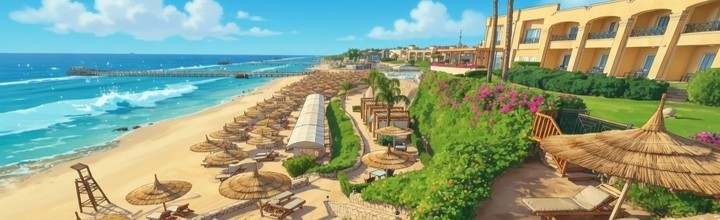 Пляж Махмеи считается одним из самых красивых в Красном море: мелкий белый песок, бирюзовая вода, пальмы. Мелководье тянется на 50-100 метров — идеально для детей. Подводный мир богаче, чем на Orange Bay: коралловые сады начинаются сразу у берега, рыбы-клоуны, рыбы-попугаи, скаты, морские ежи, иногда заплывают дельфины.