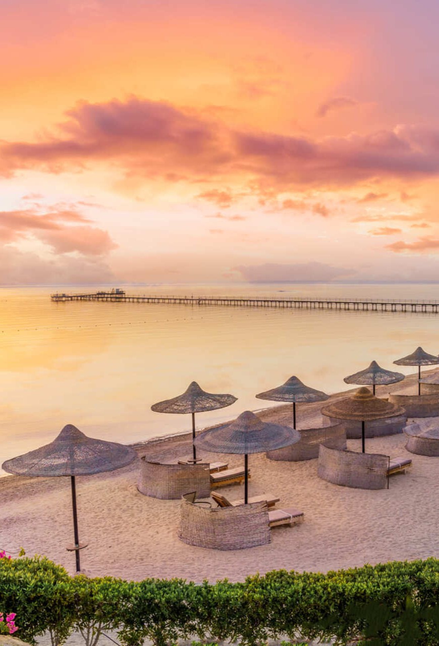 Курорты Красного моря предлагают круглогодичное купание в теплой воде, песчаные и коралловые пляжи, снорклинг среди рифов с сотнями видов рыб, морских черепах, дельфинов.