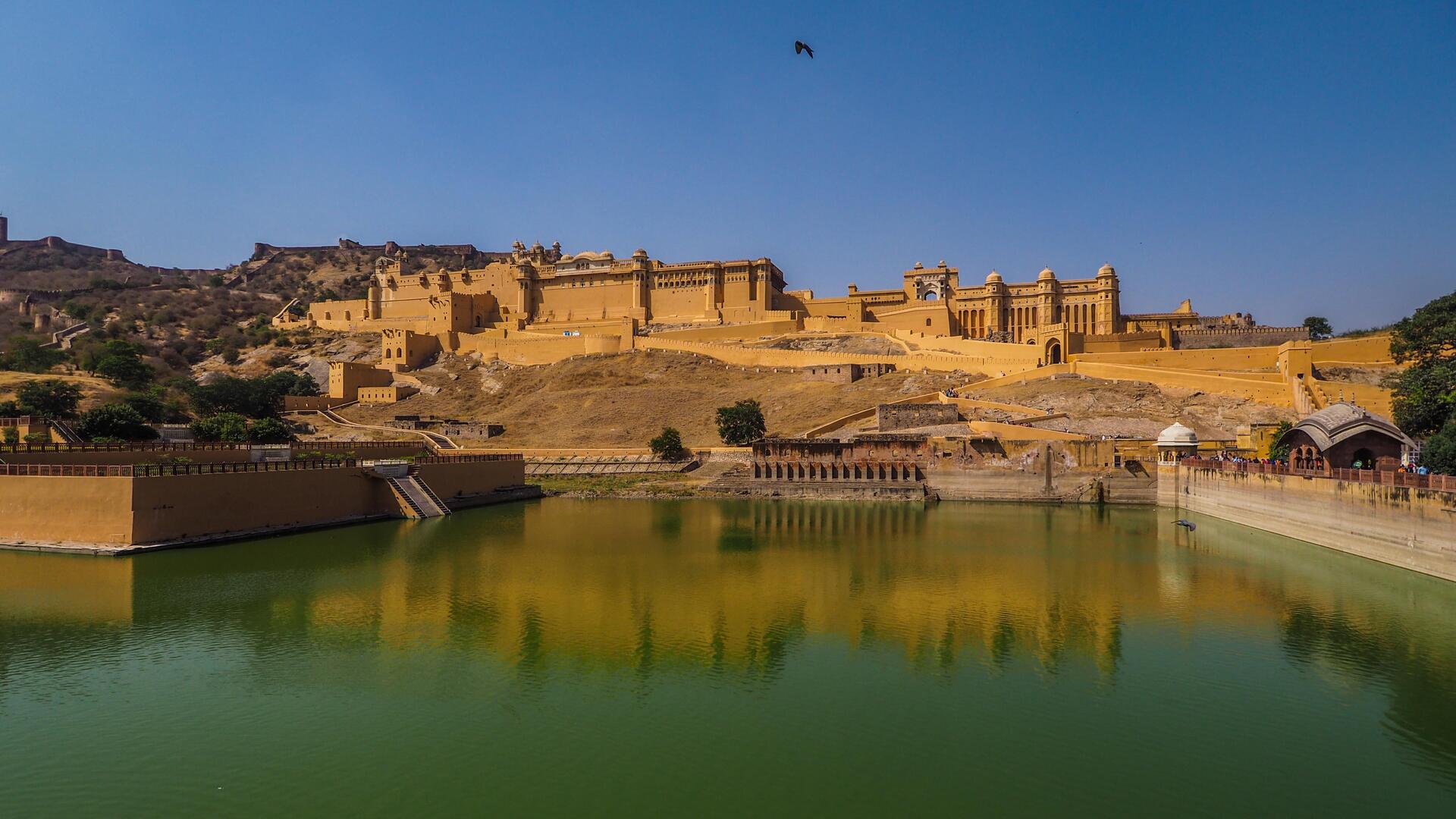 Находится не в самом Джайпуре, а в соседнем городе Амер и считается примером раджпутской военной архитектуры с сочетанием могольских и индуистских архитектурных традиций. Древняя крепость-дворец, построенная в конце XVI века, является объектом Всемирного наследия ЮНЕСКО в составе «Холмов фортификаций Раджастхана». Внешне — крепость, стоящая на холме, внутри — дворцы и сады.