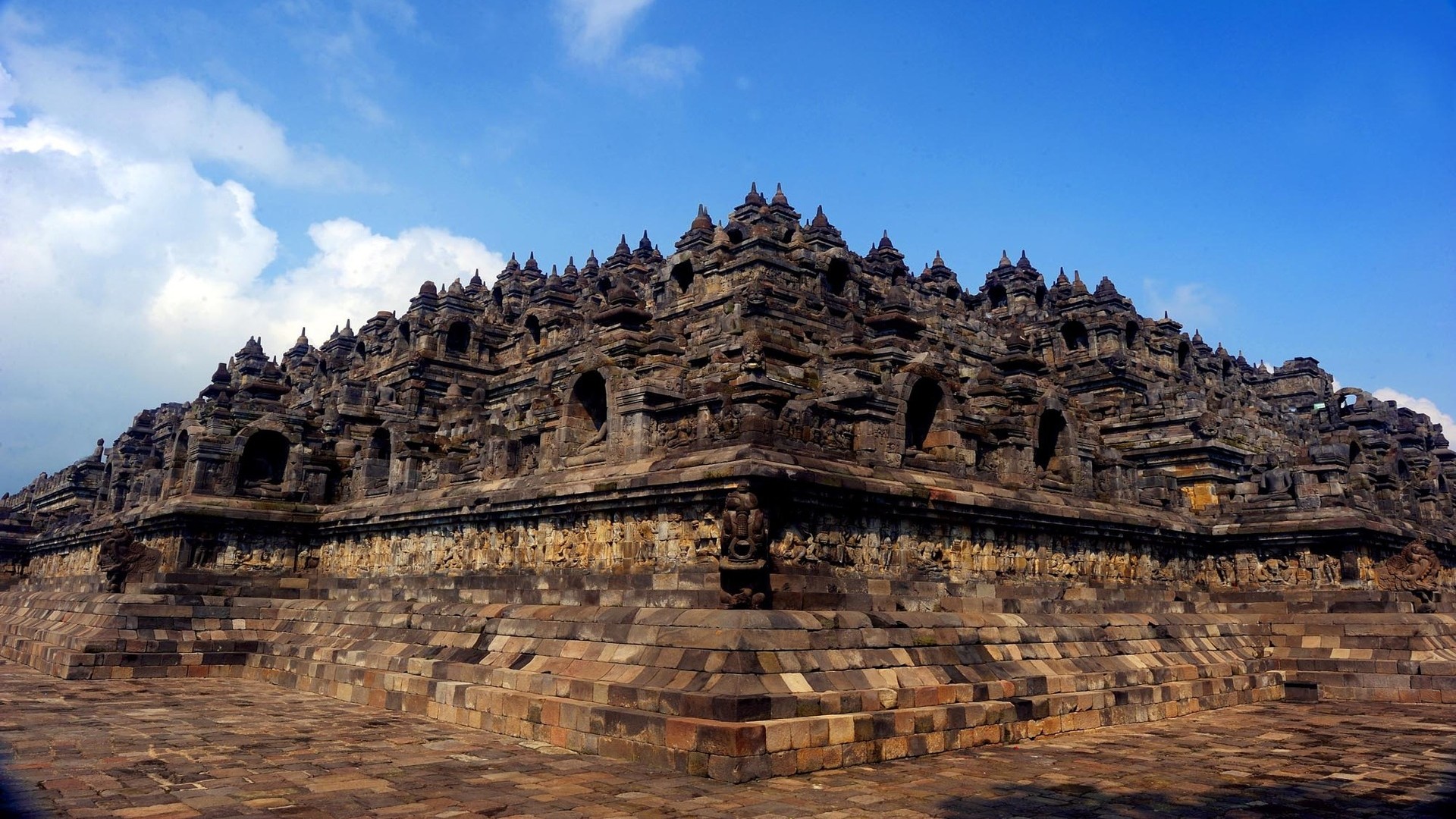 Боробудур построен в VIII–IX веках во времена династии Шайлендра. Храм представляет собой огромную ступенчатую пирамиду из девяти уровней, символизирующую путь к просветлению в буддийской философии.