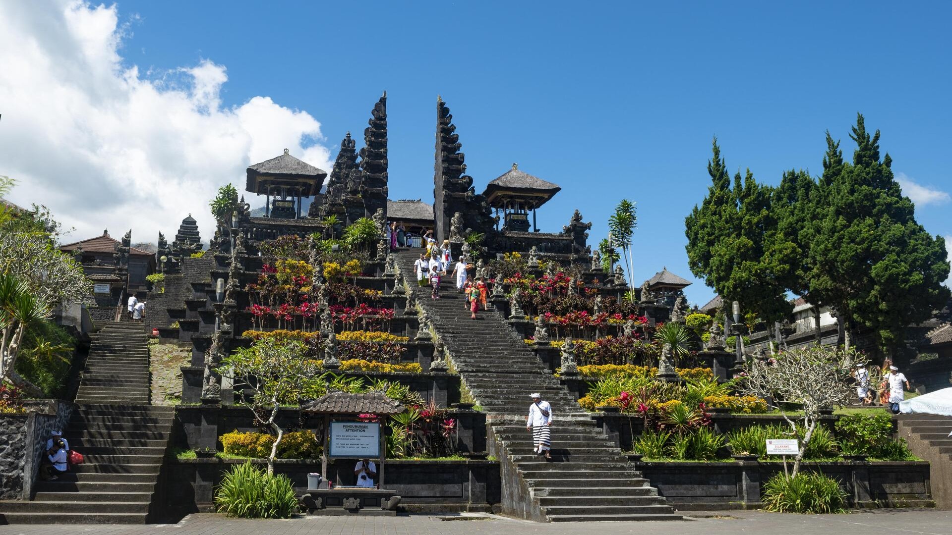 Бесаких считается главным храмовым комплексом острова Бали. Он расположен на высоте около 1000 метров на склоне вулкана Агунг и состоит из десятков храмов, соединенных лестницами и террасами.