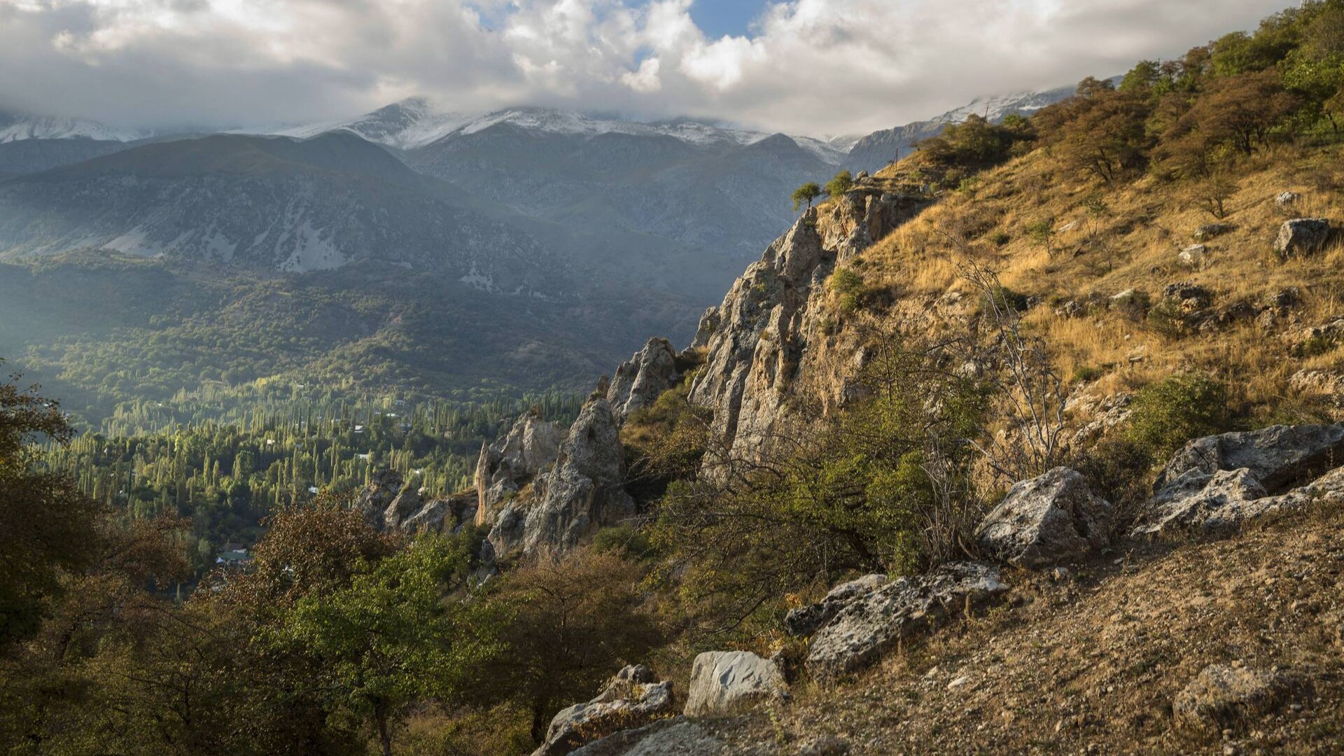 Заповедник Падыша-Ата: охраняемая горная территория в Джалал-Абадской области с лесом, рекой и священными местами у подножия скал.