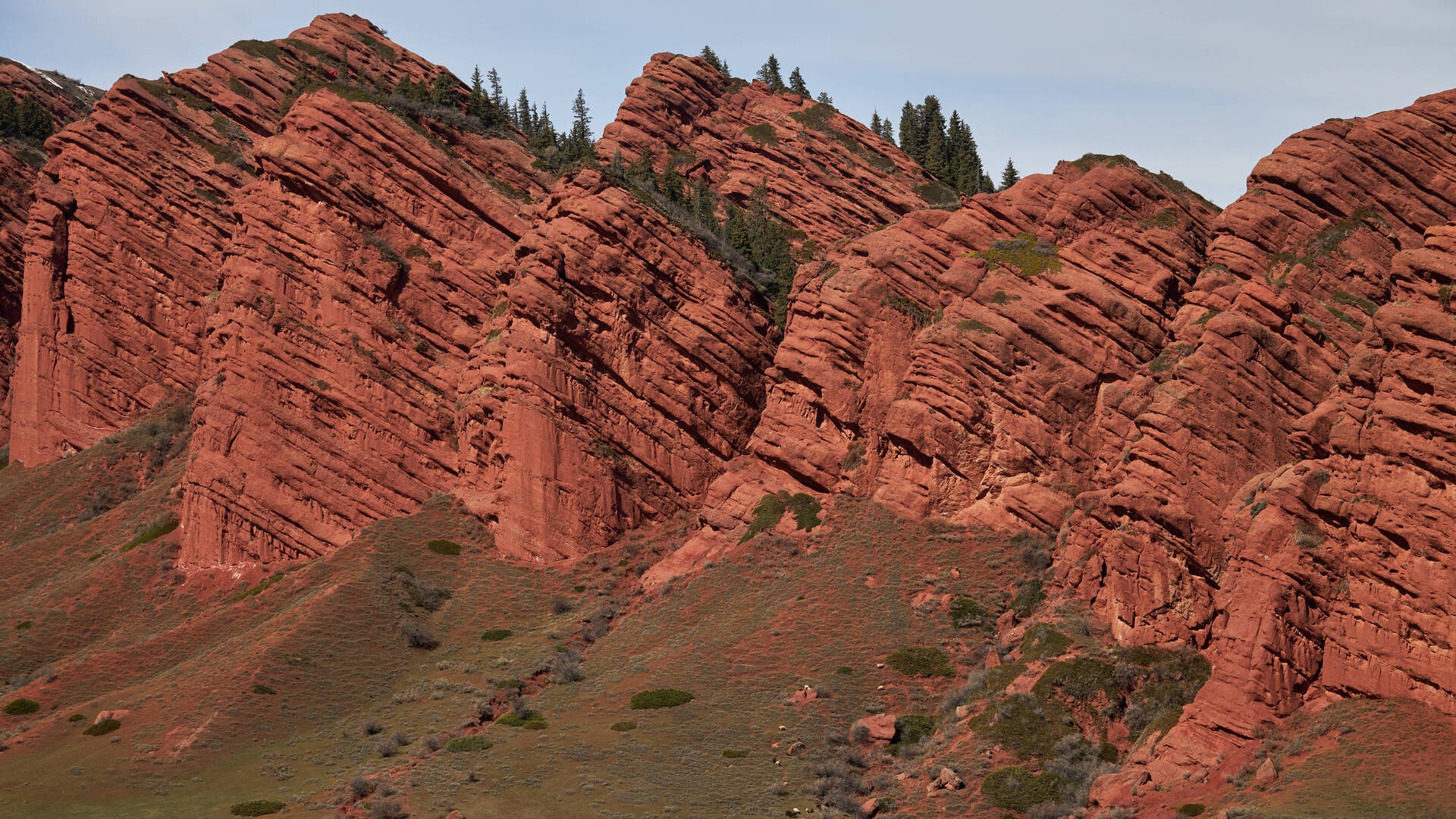 Ущелье Джеты-Огуз — одна из самых фотогеничных природных локаций Киргизии. Сюда приезжают, чтобы увидеть скалы «Семь быков» из характерной для восточного Иссык-Куля красной породы. Она стала такой из-за высокого содержания железа.