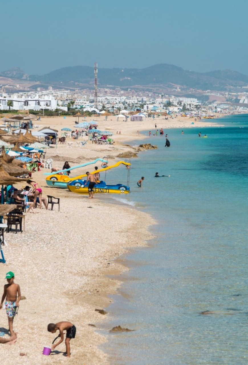 Главный пляж Агадира чистят каждое утро. Пологий вход и спасатели делают пляж идеальным для семей с детьми. С 11 до 17 часов солнце печет сильно, так что купаться лучше утром или ближе к вечеру. Обратите внимание, что вода в Атлантике даже в августе не поднимается выше +22…+23°C, зато волны отличные для серфинга.