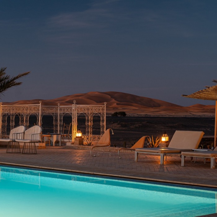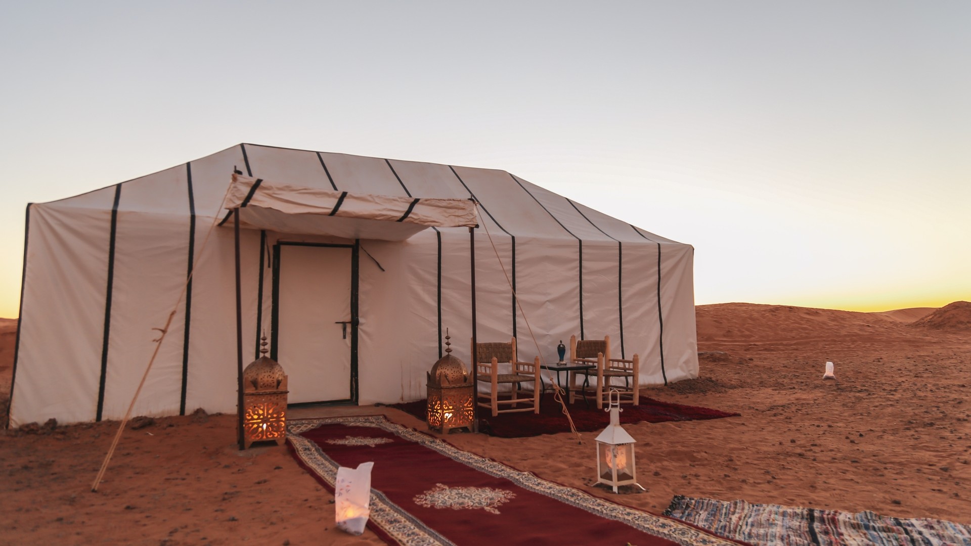 В пятизвездочном глемпинге Luxury traditional Tent Camp туристы останавливаются на экскурсиях по пустыне. Днем гостям доступны активные развлечения, а вечером — традиционный берберский ужин с развлекательной программой.