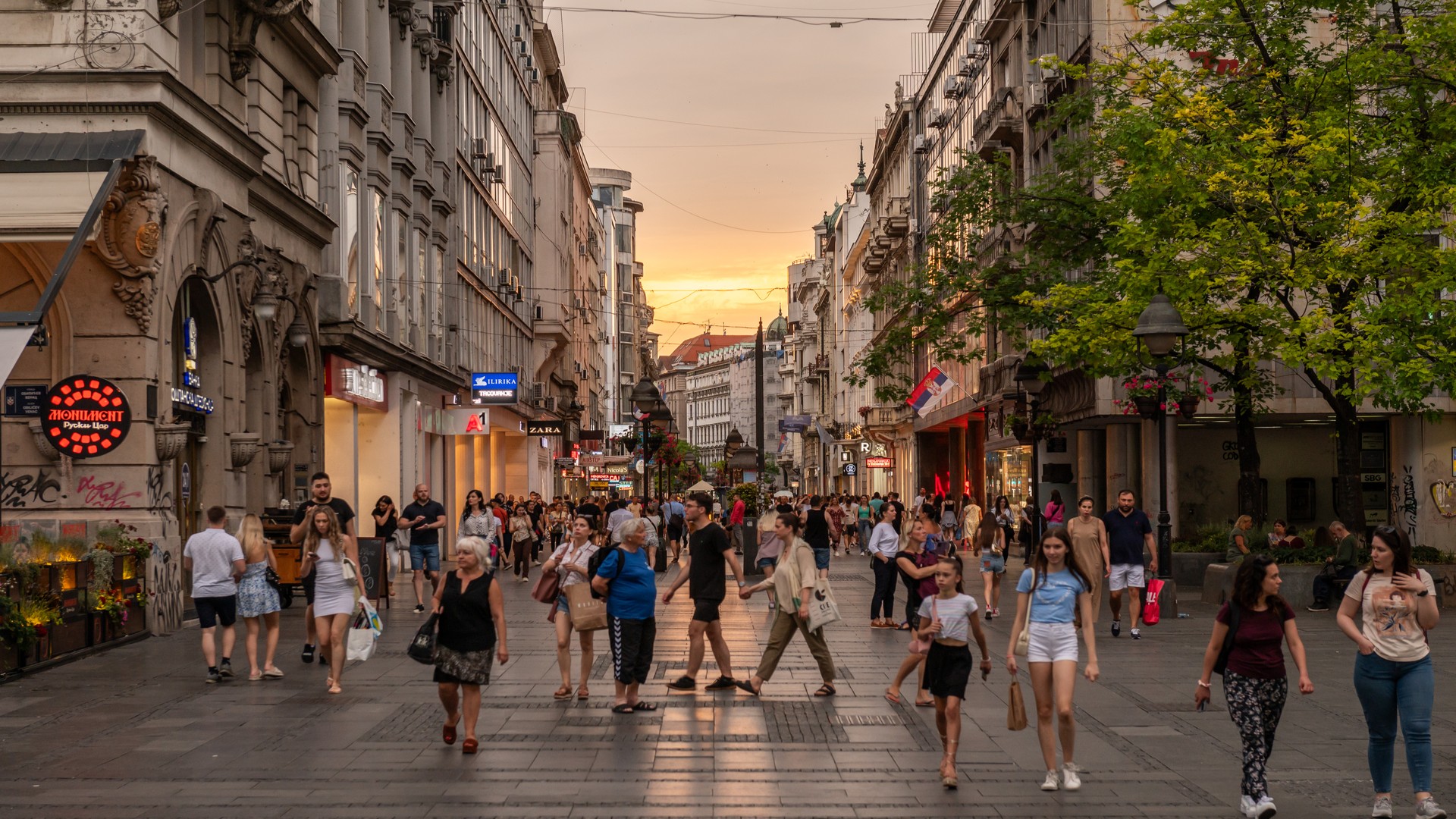 Тротуарные кафе, эксклюзивная торговая улица Кнез Михайлова, Белград.