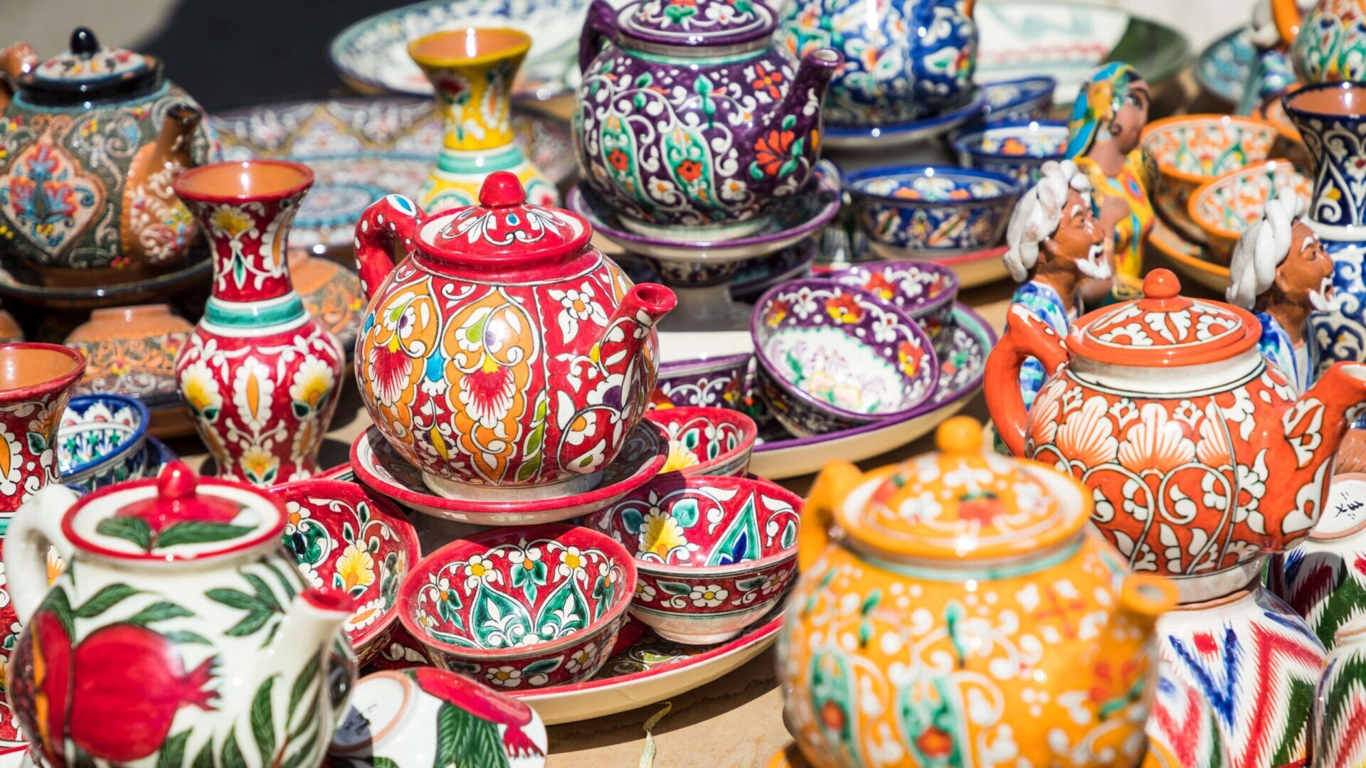 Риштанский гончарный промысел известен с IX века, сохраняет уникальную технологию создания керамики с использованием местной красной глины «ховликон» и минеральных красок «ишкор». В семейных мастерских Мурадовых, Нарзуллаевых и Юсуповых можно наблюдать полный цикл производства: от формовки на ножном гончарном круге до ручной росписи и обжига в дровяных печах при температуре 1000 °C.