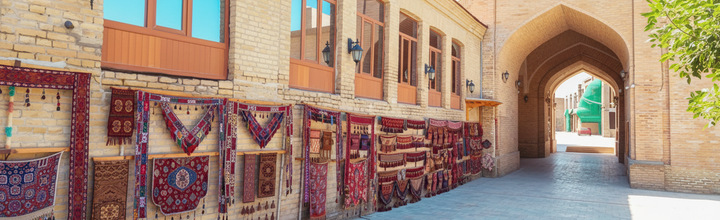 Торговый мини-город состоит из нескольких павильонов с голубыми куполами: продуктовый ларек, вещевые ряды, ювелирные и ремесленнические лавки, а также базар ковров, одеял и матрасов. Здесь можно купить восточные сладости и специи, орехи, сухофрукты, сувениры, тюбетейки, национальные халаты, керамику. С продавцами принято торговаться.